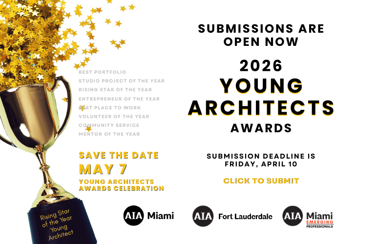 Award Submission Deadline is on April 10th. Winners will be announced at the 2026 Young Architect Awards on Thursday, May 7th.