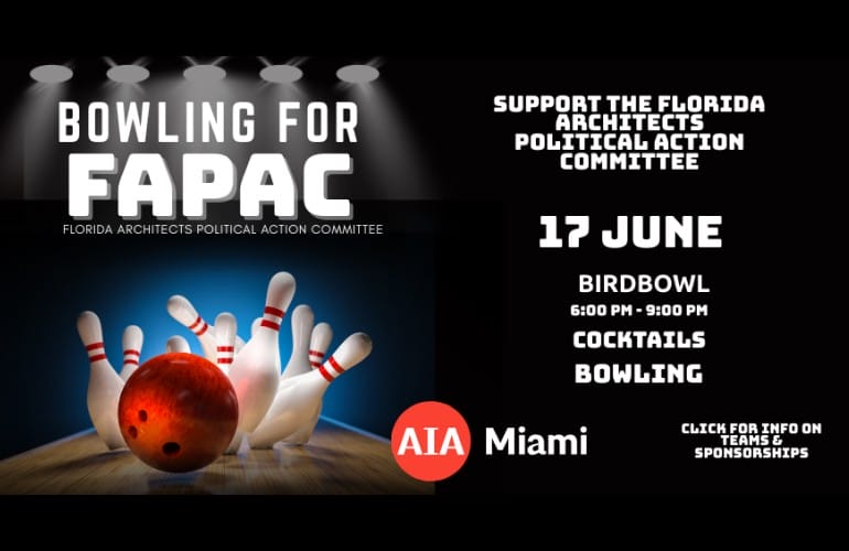Support FAPAC by participating in AIA Miami’s 2nd annual Bowling tournament! Get your team together (six people per team) and join us for a fun…
