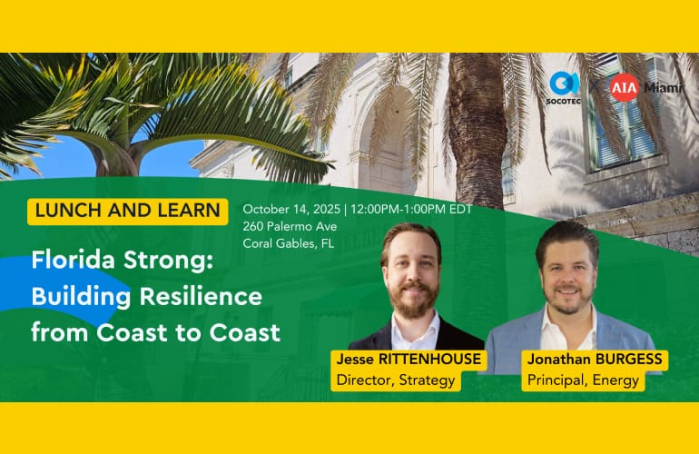 Florida Strong: Building Resilience from Coast to Coast presented by Socotec October 14 12:00 pm - 1:00 pm SOCOTEC Coral Gables Office 260 Palermo Ave, Coral Gables, FL Read More